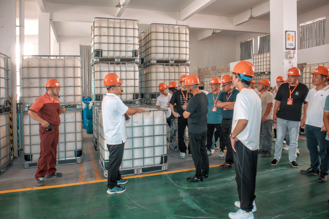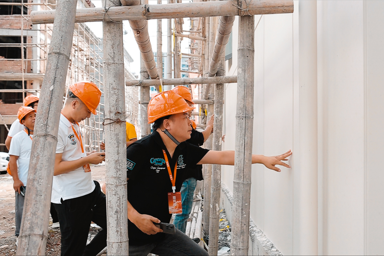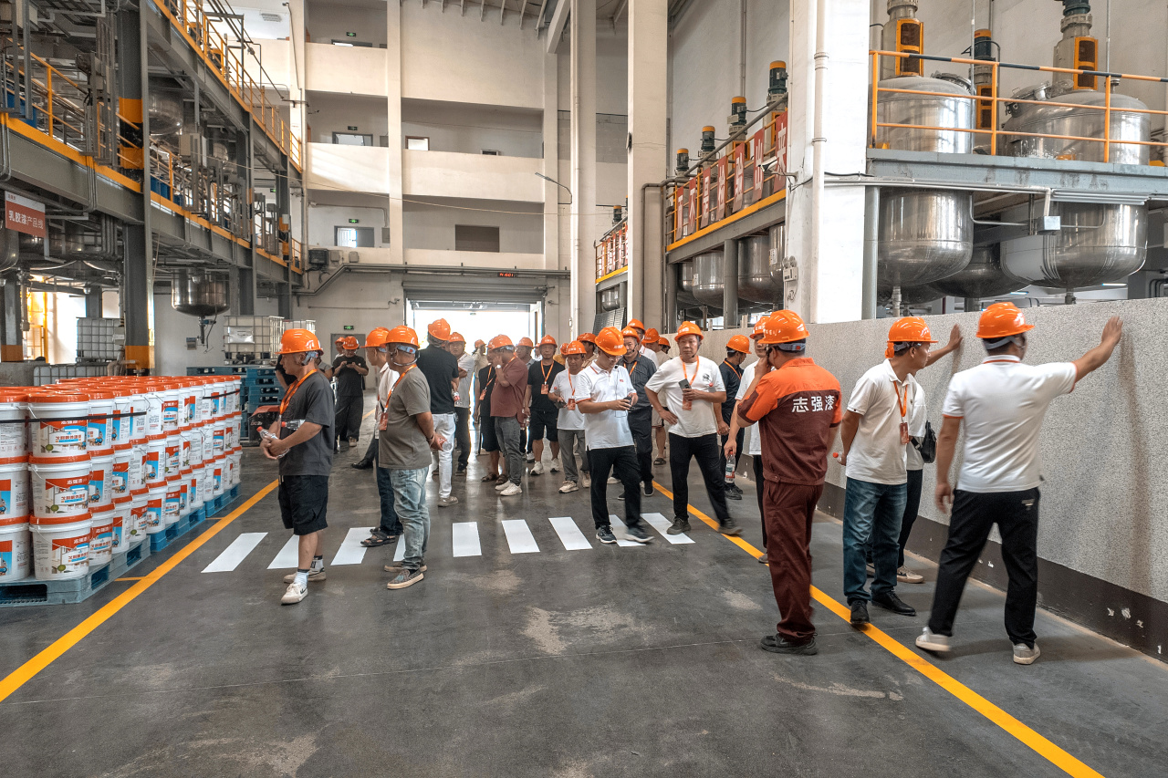 浙江志强涂料有限公司总经理卢宇峰、研发中心技术总工程师吴泽前、安环部经理屈道军分别带领嘉宾们参观了新品瓷釉石灰石样板房及志强涂料现代化生产基地,深入了解外墙仿石漆的生产工艺与品质把控,现场交流氛围热烈。