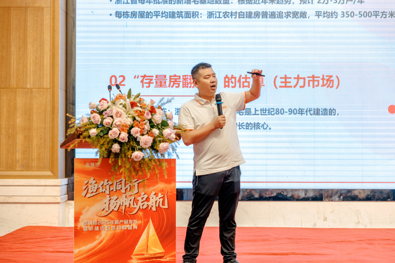 应用总工程师张保全面解析了志强外墙仿石漆产品,包括产品的核心技术、仿真工艺,到耐候性、环保性等关键性能指标;新零售事业部总经理赵岳极重磅推出外墙仿石漆招商财富大礼包,为合作伙伴提供全方位扶持及福利,助力市场开拓。