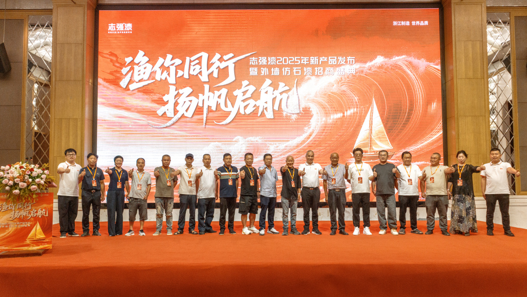 10月15日,浙江志强涂料有限公司“2025年新产品发布暨外墙仿石漆招商盛典”在浙江临海成功召开。本次盛典以“渔你同行,扬帆启航”为主题,汇聚了来自全省各地的志强经销商、合作伙伴等百余人,共同见证志强外墙仿石漆涂料的全新启航。